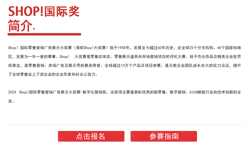 國(guó)際零售營(yíng)銷廣告展示大獎(jiǎng)賽現(xiàn)正公開招募參賽作品